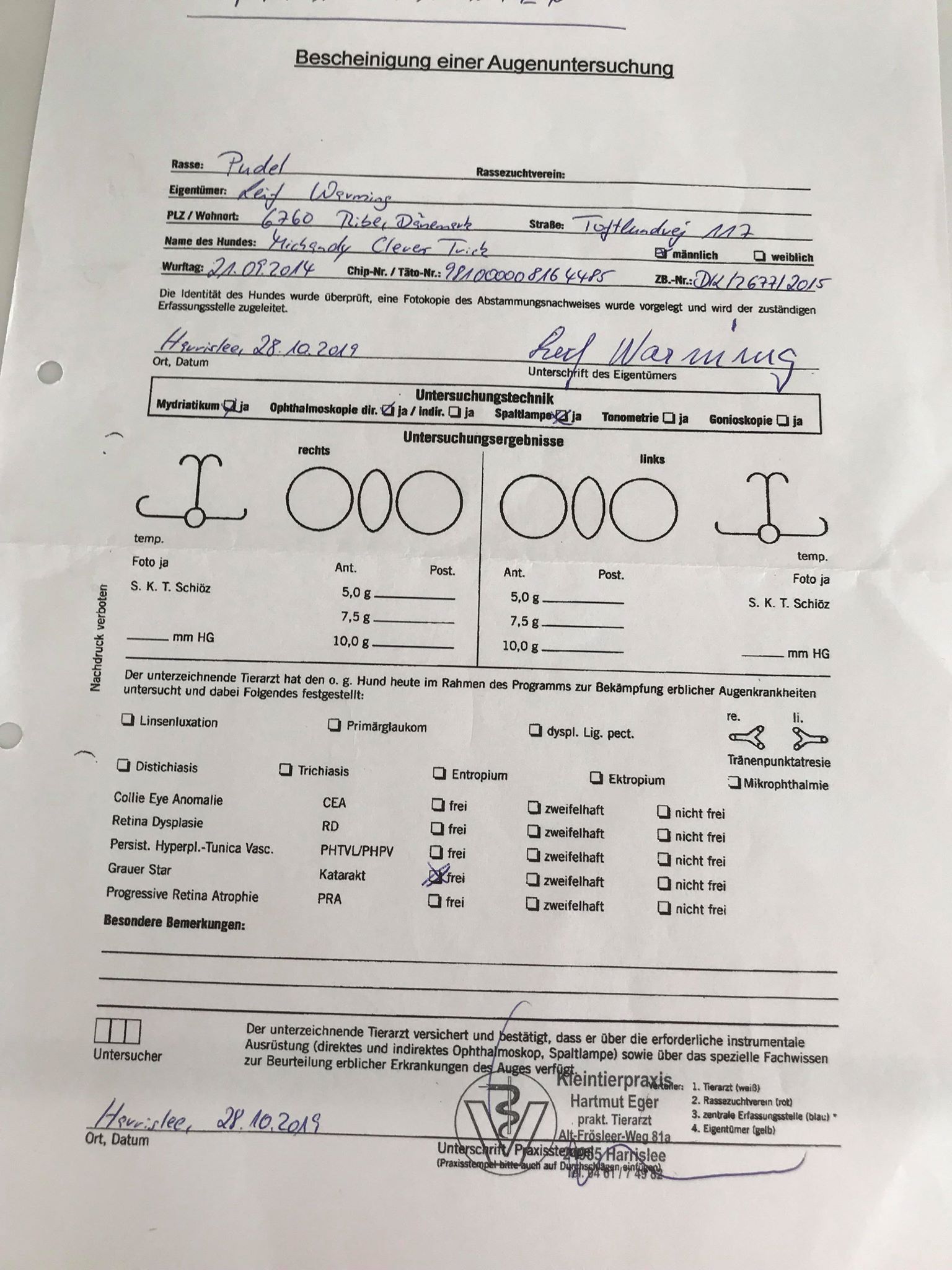 | HD | PL | ECVO | prcd-PRA (DNA) | vWD | NE |