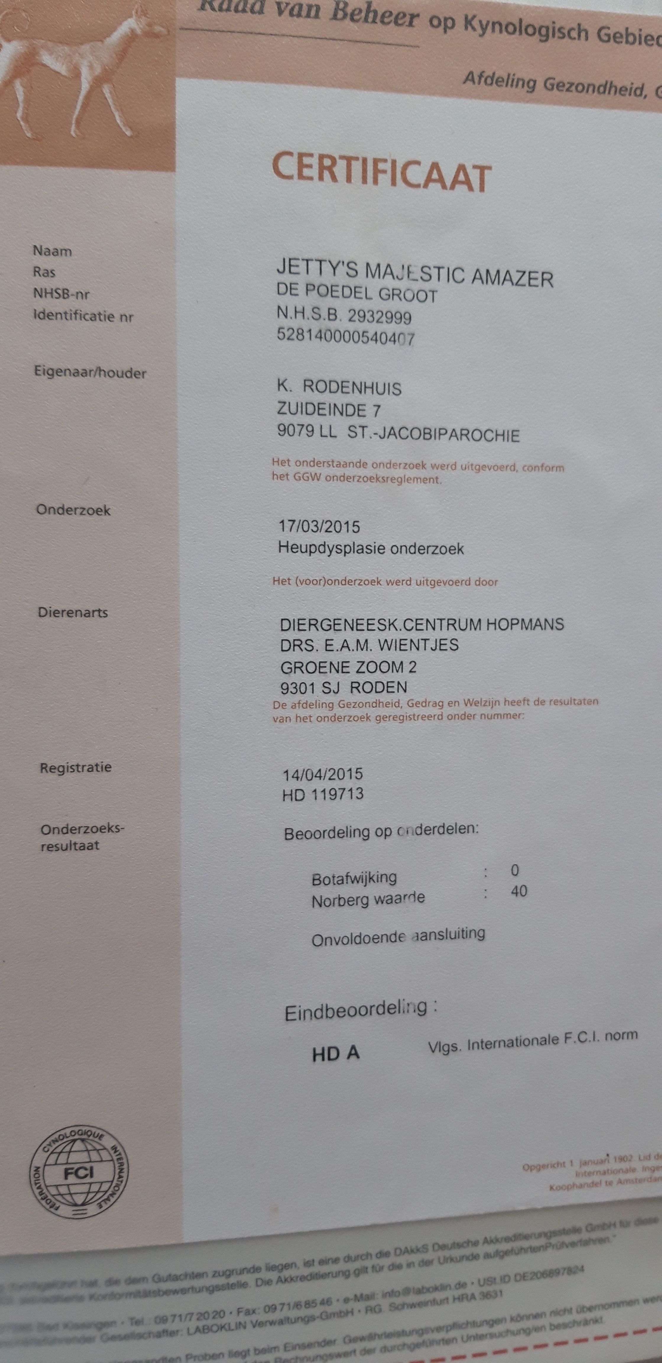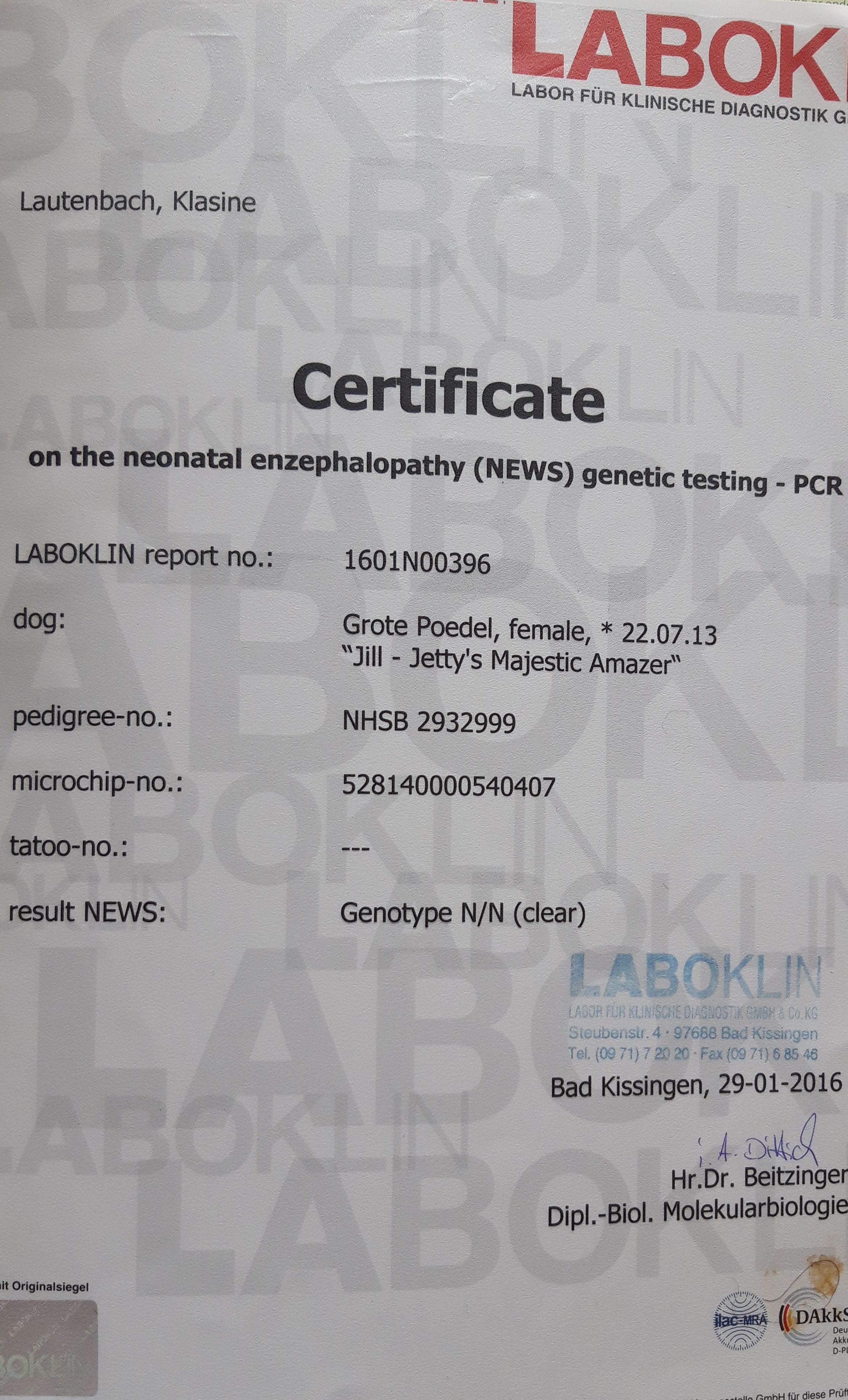 | HD | PL | PRA (ECVO) | prcd-PRA (DNA) | vWD | NE |