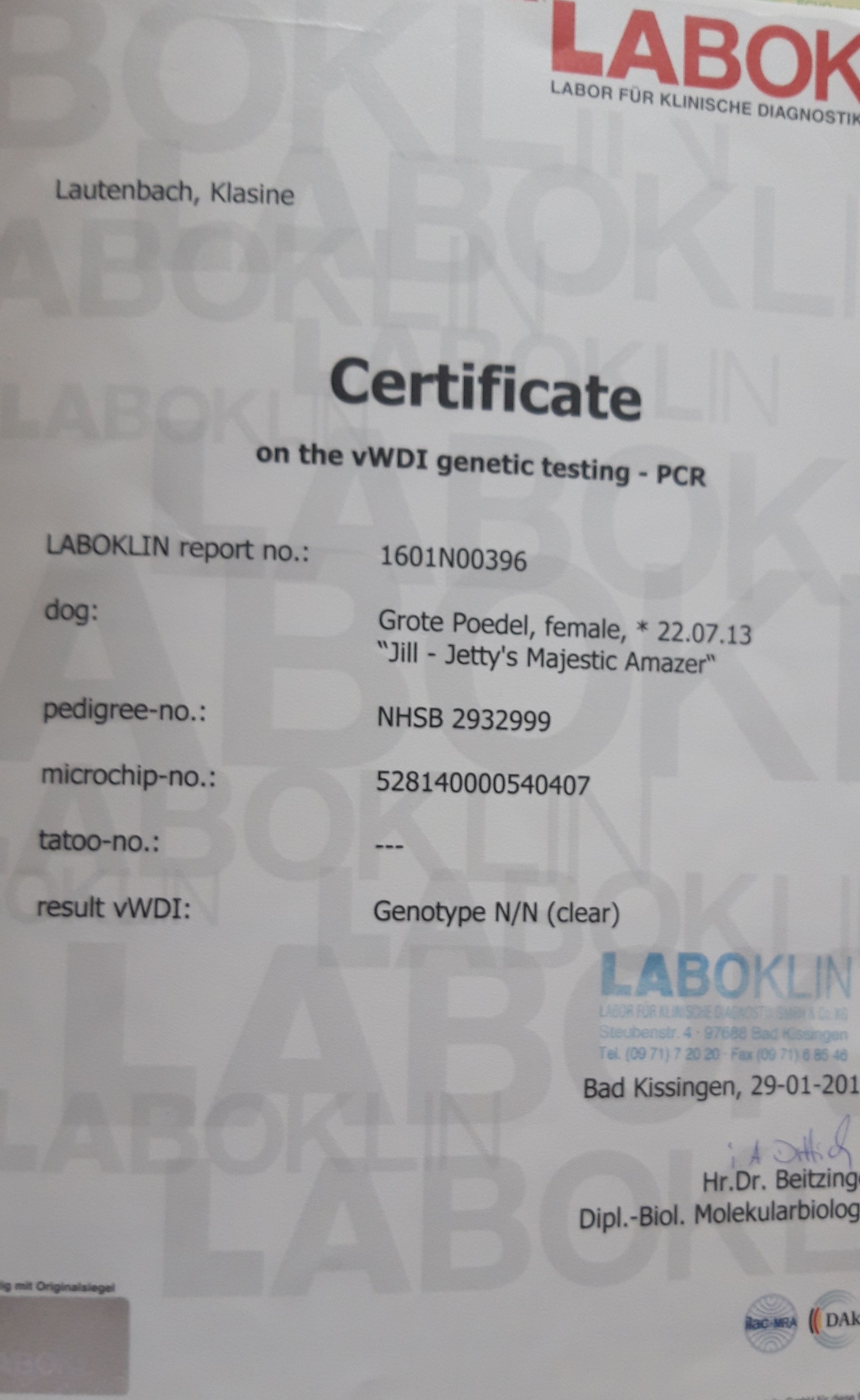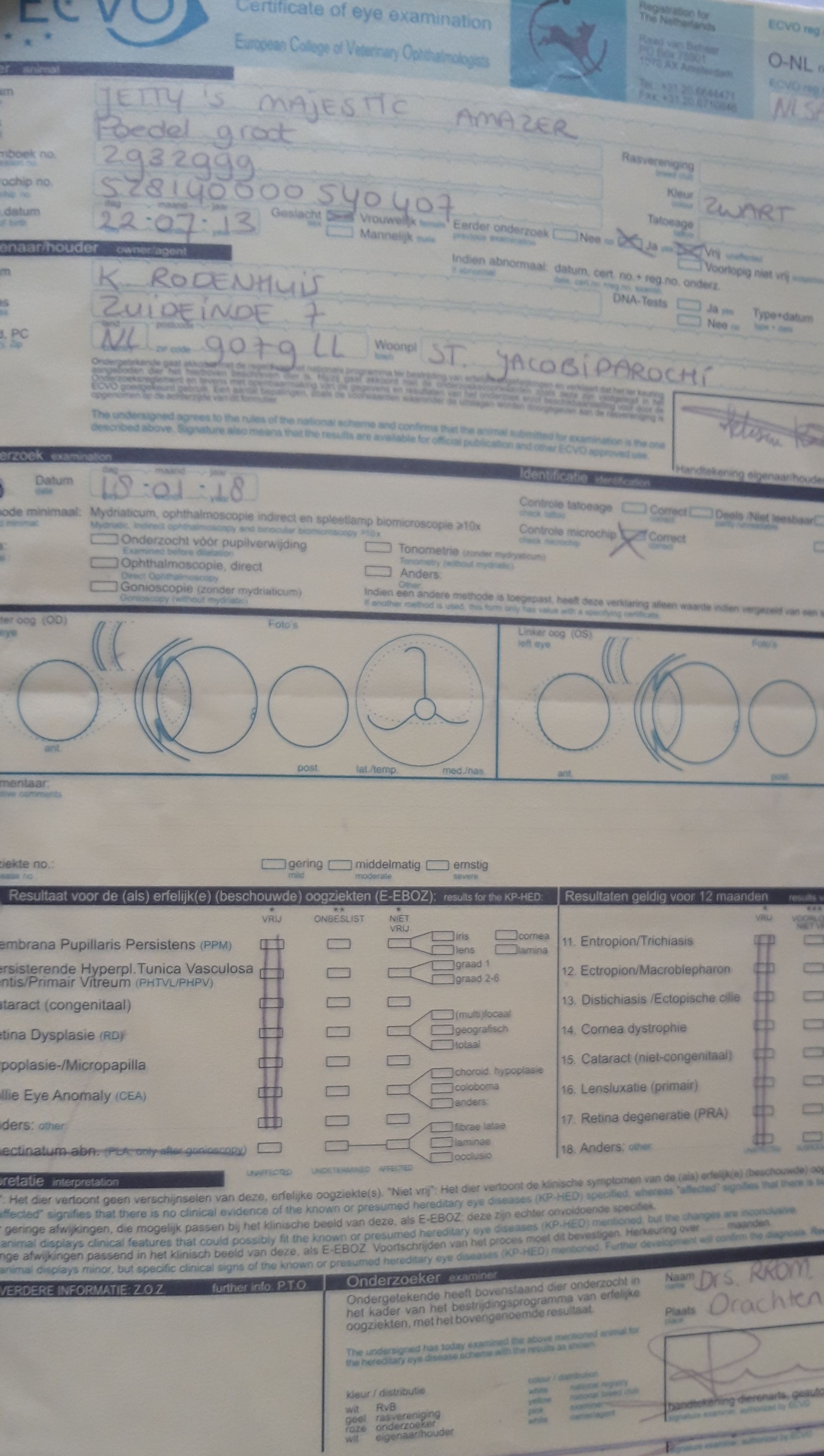 | HD | ECVO | PRA DNA | vWD/NE | |