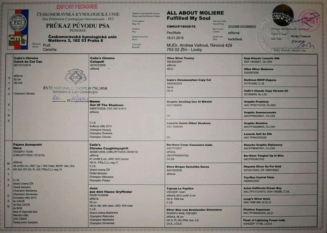 | Calle's Chrome Catch as Cat Can | Pajana Auenpudel Nema | |