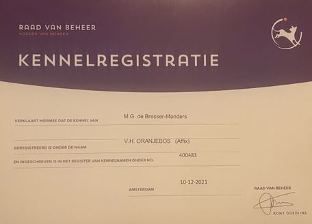 Onze hobby is het af en toe fokken van een nestje, met stamboom- en alle verplichte keuringscertificaten.